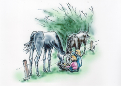 Illustratie op verzoek van schrijver Dick Bosveld voor zijn verhaal 'Twee kerstwensen gaan tegelijk in vervulling' in het Streekjournaal van Rheden (Nederland) en omgeving op 22 december 2010. (pagina 17)